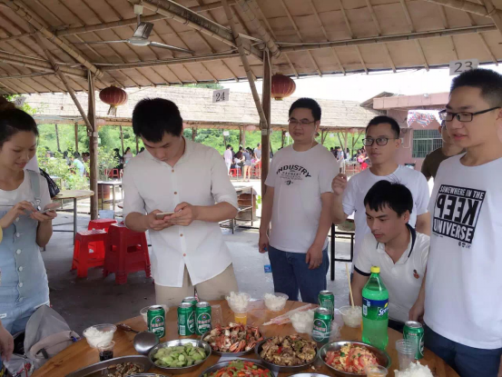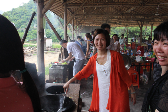 領(lǐng)取食材、殺魚等,一起動手生火,把做飯,俗語云:男女搭配干活不累 !一頓香噴噴的飯菜就在輕松愜意的氛圍里上桌,大家像一家人一樣其樂融融的享用午飯!